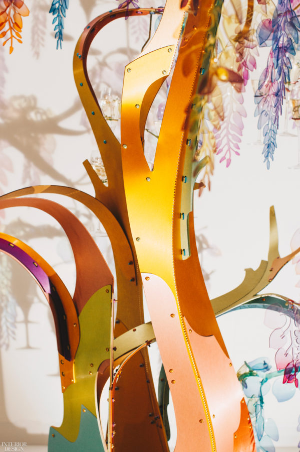 Woods bonte wereld is een eclectische mix van kleuren, patronen en texturen. Je zou haar een maximalist kunnen noemen. Toch ziet ze zichzelf niet zo. “Een maximalist voegt kleur en patroon toe zonder specifieke reden. Mijn werk is het resultaat van de context van de opdracht en daardoor ontstaan de kleuren.” Kleuren zijn voor Wood als goede champagne. “Om de smaak goed te ervaren, om de nuances te begrijpen, moet je hem heen en weer in je mond bewegen. Je proeft het op het puntje van je tong. Het proces is een persoonlijke ervaring. Als de smaak goed is, zie je het terug in het eindresultaat.”